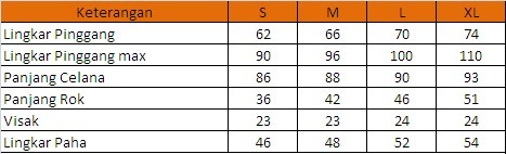 | Ukuran | S, M, L, XL |